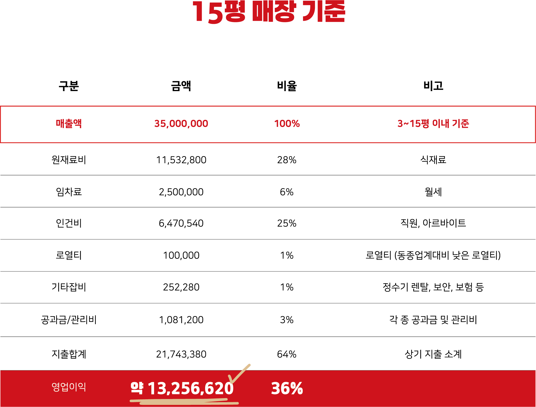 ※ 원재료비는 판매메뉴 및 계절에따라 변동될 수 있습니다